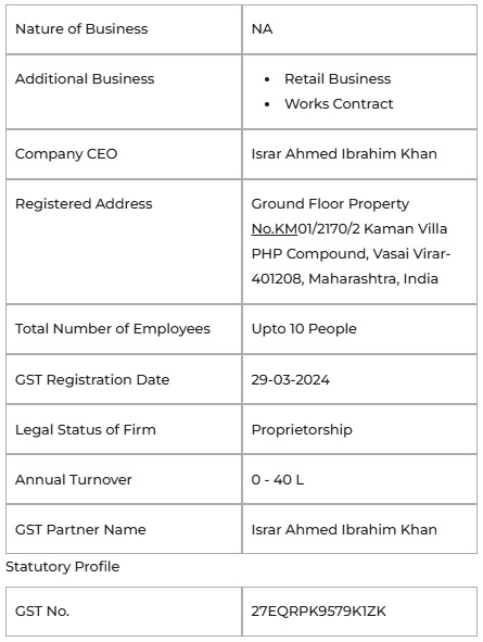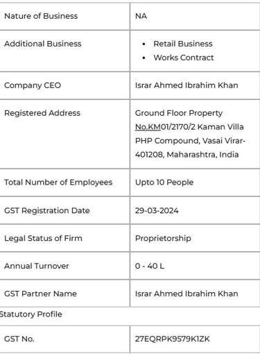 For our accomplishment story, we are grateful to our Mr.Israr Ahmed Ibrahim Khan , whose continual backing and direction have been useful to us for attaining exponential development in the current market.